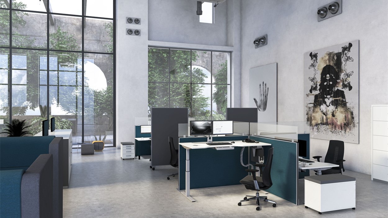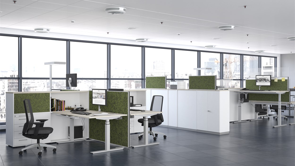 Unser AL-System überzeugt durch sein ansprechendes Design, Qualität, Ergonomie und ein unschlagbares Preis-Leistungs-Verhältnis. Ergonomie im Büro ist in erster Linie eine Frage gesunder Bewegung und der Büromöbel, die Bewegung ermöglichen. Bringen Sie mit unseren höhenverstellbaren Schreibtischen maximale Flexibilität und Bewegung an Ihren Arbeitsplatz. Für Individualität und Integration von Bürotechnik sorgen Zubehör wie unterschiedliche Kabelauslässe, Kabelkanäle, Kabelführungen, Unterbauschubladen sowie CPU-Halterungen.