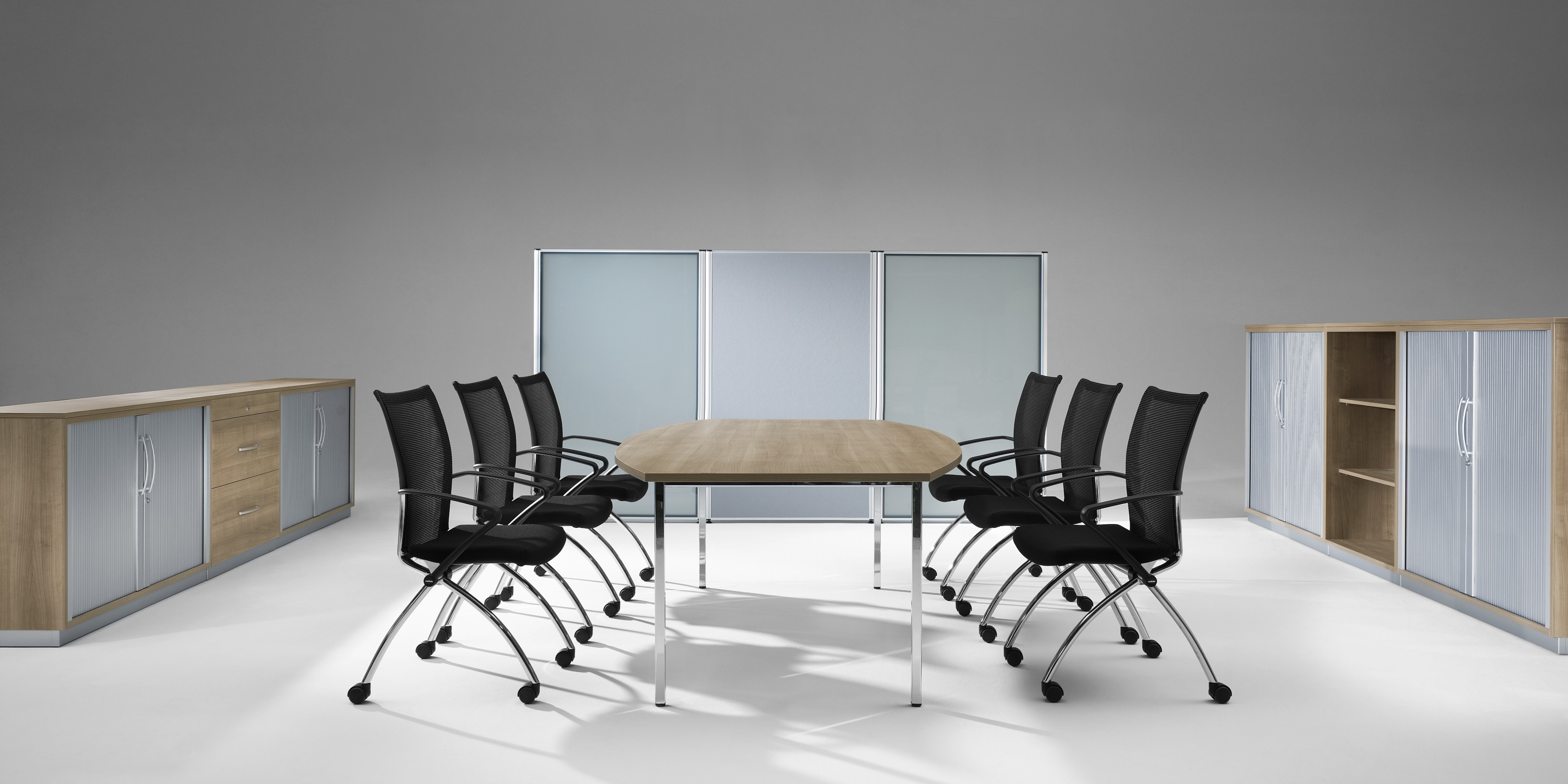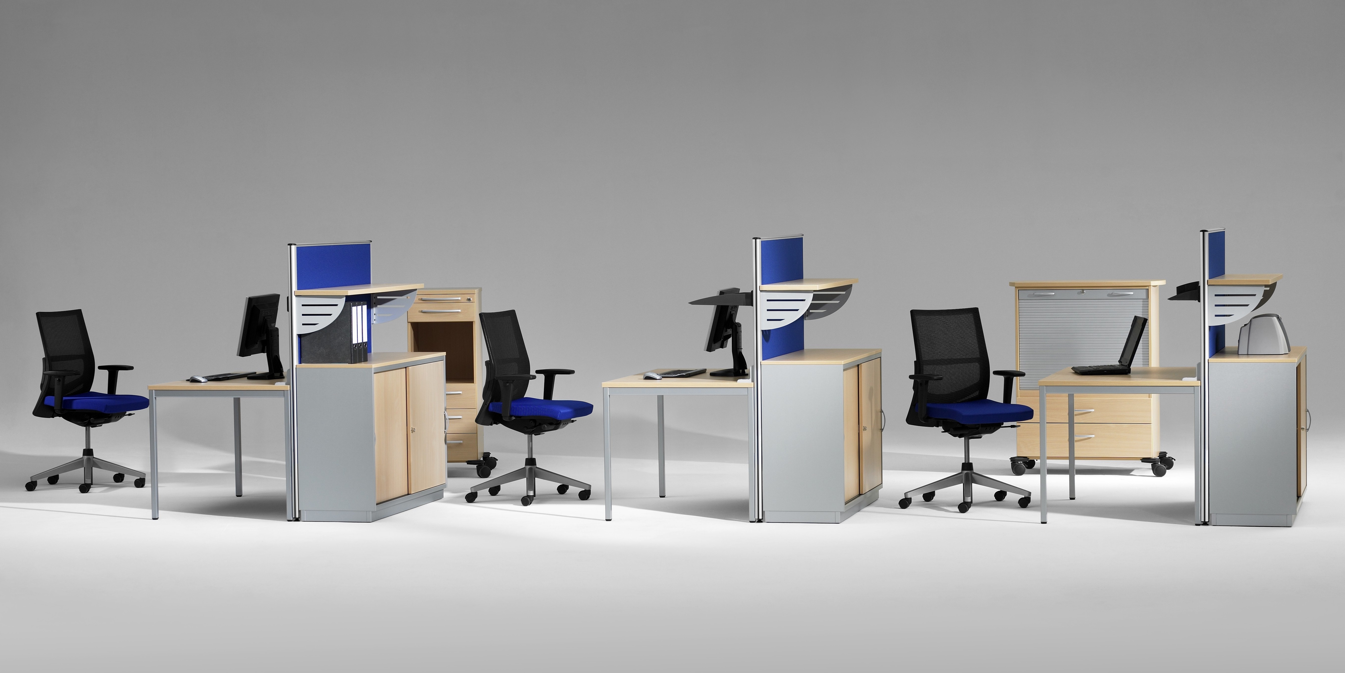 Büroeinrichtungs-System mit einer klaren Formensprache.